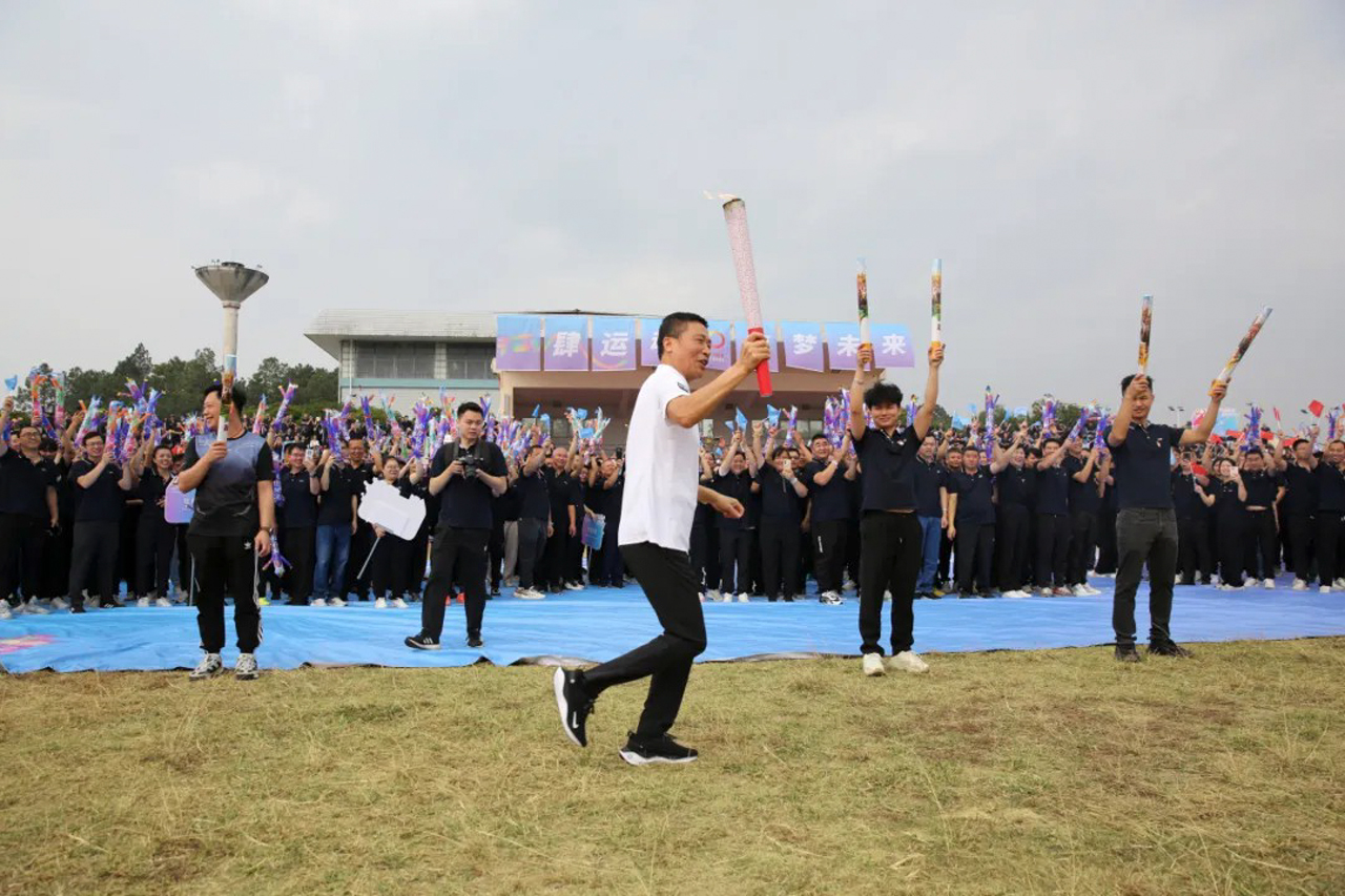 When the torch finally reached URIT Group President Mr. Shi, he carried it confidently, circling the field before ascending the podium. With roaring cheers, he lit the main cauldron, sending flames soaring skyward. The burning torch symbolized the aspirations of URIT people, illuminating the venue with hope and passion.